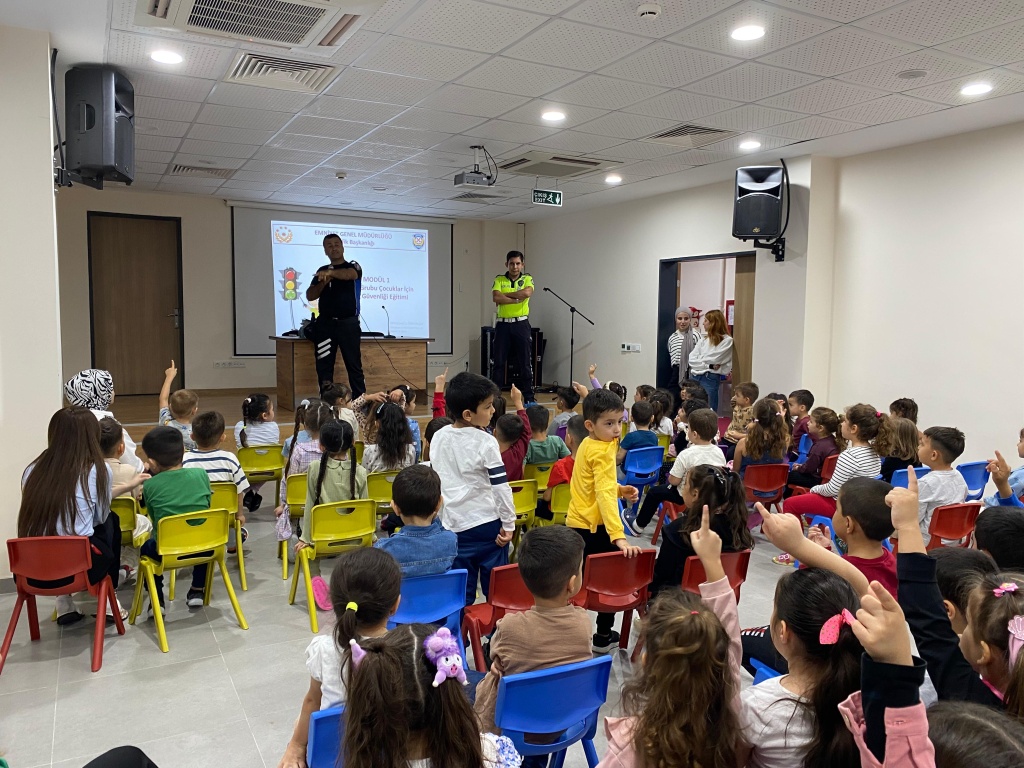 Serik İlçe Emniyet Müdürlüğünü Tarafından Anaokulu Öğlenci Grubu Öğrencilerimize Trafik Kurallarıyla İlgili eğitim verildi.Trafik Dedekleri Projesini okullarla birlikte uygulayan İlçe Emniyet Müdürlüğünde görevli polislerimiz öğrencilerimizin seviyesine uygun,hayatın içinden örnekler vererek etkinliklerini gerçekleştirdiler.Okullarda uygulanan Trafik Dedektifleri Projesinin amacı;Çocuklara trafik kuralları konusunda farkındalık kazandırmak,Güvenli davranış alışkanlıkları geliştirmek,Toplumda trafik güvenliğine katkı sağlayacak bireyler yetiştirmektir.Serik İlçe Emniyet Müdürlüğüne Etkinlikleri için teşekkür ederiz.